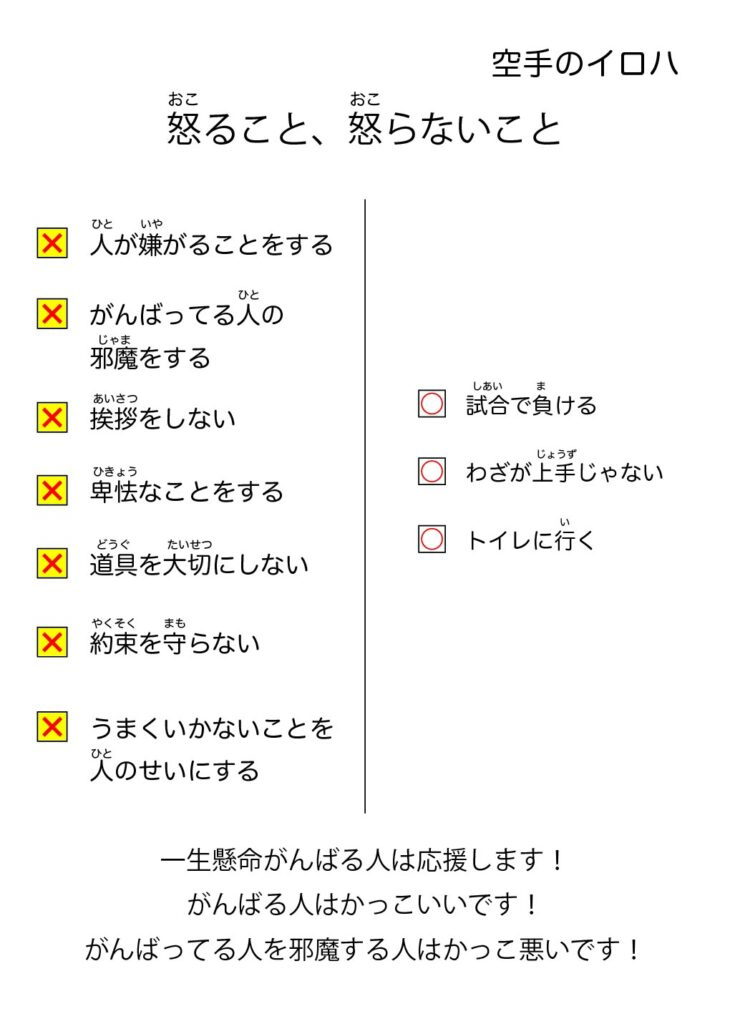 1)入館 道場、先生、仲間に元気よく挨拶をします。 靴をしっかりと揃え、稽古が始めるまで準備をします。