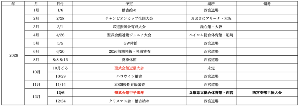 2026年 年間スケジュール